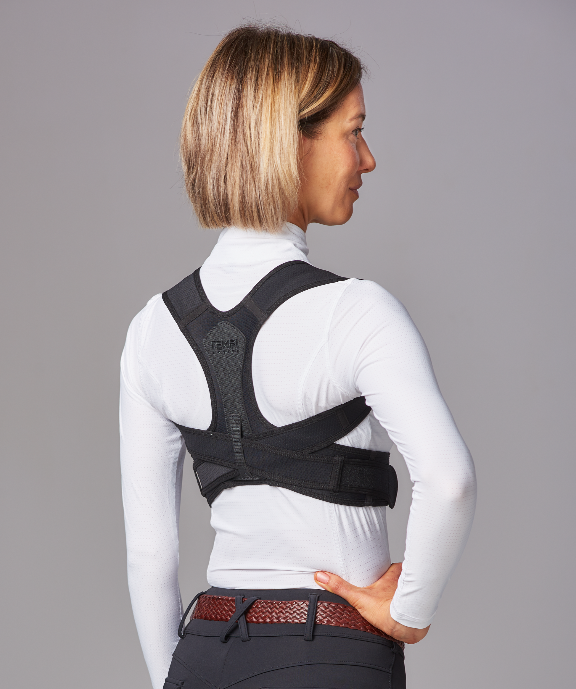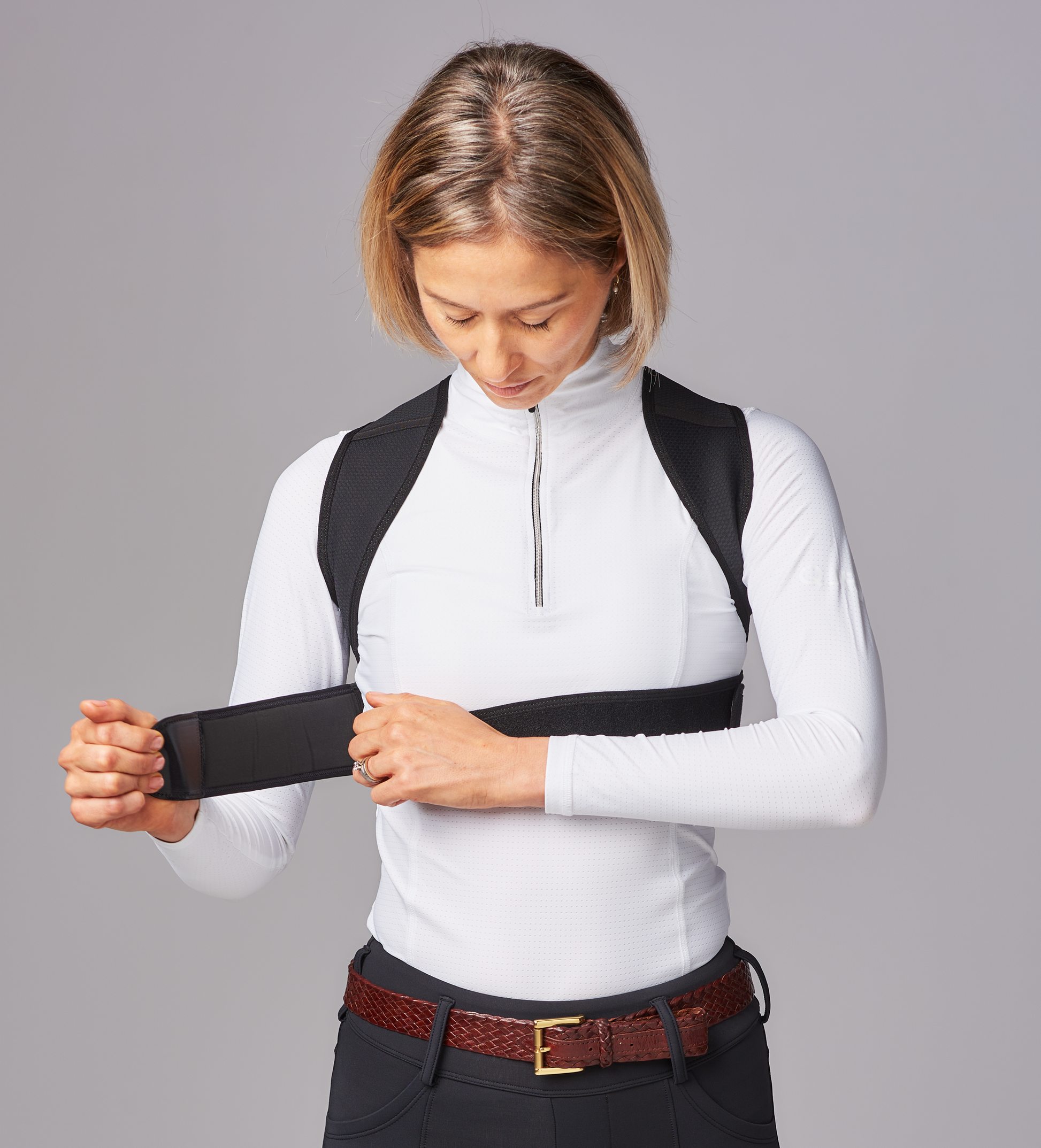 The Brace has been designed to assist with both static posture (stationary e.g. sitting or standing) and dynamic posture (whilst moving and riding). With regular wear you will achieve greater body awareness and self-correction.